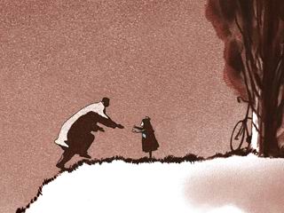 Một chiều đông, Bố dắt con ra với dòng sông xanh thẳm nghiêng mình chờ đợi. Có đám mây trắng bay lơ lửng trên đầu Bố con mình. Con chỉ cho Bố đám mây trắng nhé. Một cái ôm và nụ cười Bố dành cho con, rồi Bố đi vào lòng sông… Con không nói gì cả. Vì con biết Bố có lí do để phải đi. Con không chạy theo Bố tới tận triền sông. Vì con muốn từ trên bờ sẽ nhìn thấy dáng Bố từ xa.