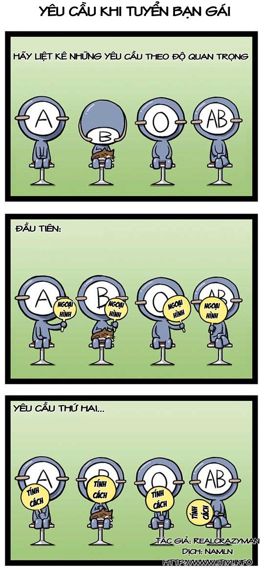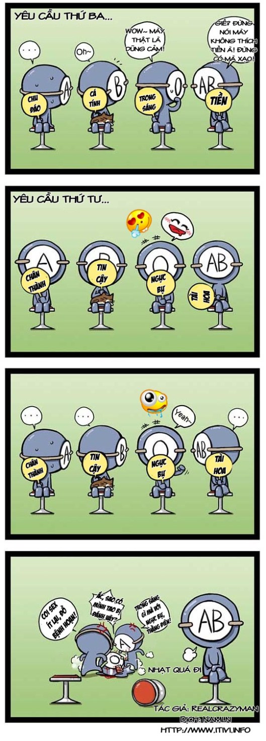 [Bàn luận về các nhóm máu] Part 2 16 Wednesday May 2012 Posted by Lãnh Nguyệt Phong in Uncategorized ≈ Leave a comment Tagscác nhóm máu, Sưu tầm Rate this:Share this: Click to share on X (Opens in new window) X Click to share on Facebook (Opens in new window) Facebook Like Loading...