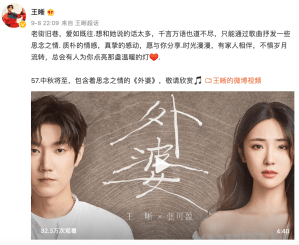 Trước Trung thu hai ngày (08/09/2022), Vương Tích phát hành ca khúc “Bà ngoại”, song ca cùng ca sĩ Trương Khả Doanh.