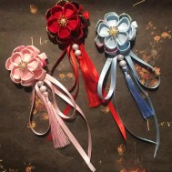 Kế tiếp thảo luận đeo trang sức gì, Chử Vũ nói cài một cặp trâm hồ điệp tơ vàng [6], Phanh Vân nói đeo hai sợi đào hoa lưu tô lụa mỏng [7], cuối cùng Yến Thất liền buộc hai sợi hồ điệp lưu tô thắt bằng lụa mỏng [8], to bằng cái móng tay, rũ từ búi tóc đến vai leng keng leng keng, lại đeo thêm một đôi bông ngọc đào hoa màu hồng phấn [9], cổ tay mang một chiếc vòng ngọc băng hoa phù dung [10].