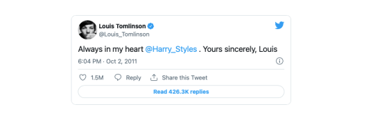 Trong những năm đầu của nhóm, Styles rất cởi mở về chuyện “Larry Stylinson” và nói rằng anh ấy và Tomlinson đã bàn về việc dọn về sống chung cuối đời sau này vì tình bạn của họ. Chiếc tweet ngọt ngào từ Tomlinson gửi cho Styles năm 2011 là chiếc tweet được chia sẻ nhiều thứ hai trong lịch sử Twitter: