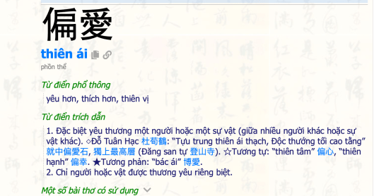 Chuyện cái tên FMV: Tác giả dùng từ “thiên ái”, có thể dịch xuôi là “thiên vị”. Tiếng Trung thì toàn I/you nên đọc cái tựa vid trên Youtube mấy bạn cũng biết Shi dịch thế nào rồi: “Vì thiên vị em, anh đưa đầu chịu chém”. Ai ngờ, coi đi coi lại cái vid mấy lần, Shi mới nhận ra chiếc vid này làm từ góc nhìn của Thâm Thâm chứ không phải Xi cưa!!