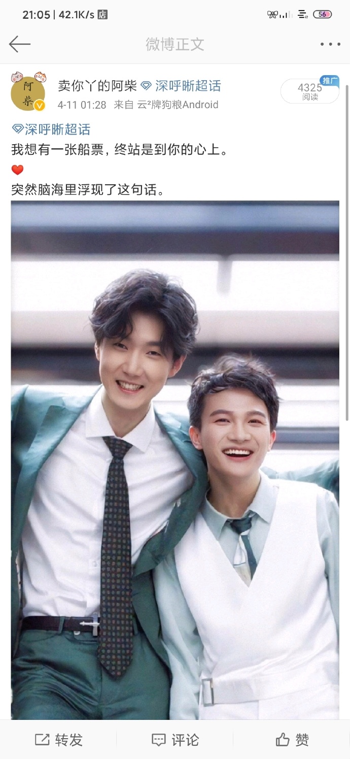 rep: Ngày 8 tháng 12 năm 2018 Thâm Thâm đi Trường Xuân, đã mặc áo phao Tích ca cho mượn, cậu còn đăng một cái tút nữa (bây giờ chỉ có thể xem trong vòng 6 tháng thôi) Nội dung là như thế này: “Nghe nói tui phải đi Trường Xuân, Tích ca của tui nói em nhất định nhất định nhất định nhất định nhất định nhất định nhất định phải mặc nhiều vào, liền cho tui mượn một cái áo thật to, tui chính là boy mặc dày nhất cả sân bay………. Cực kì ấm áp, ấm đến mức không thấy chân mình đâu, ấm đến mức không nhặt điện thoại được, ấm đến mức kéo khoá không lên luôn….. Thật sự là ấm đến mức làm người ta cảm thấy thoả mãn vô cùng cứ cảm thấy không làm gì cả thì sẽ rất có lỗi với cái áo Tích ca cho tui mượn này…..” (sau đó đính kèm tấm hình mặc cái áo đó, dễ thương lắm…)