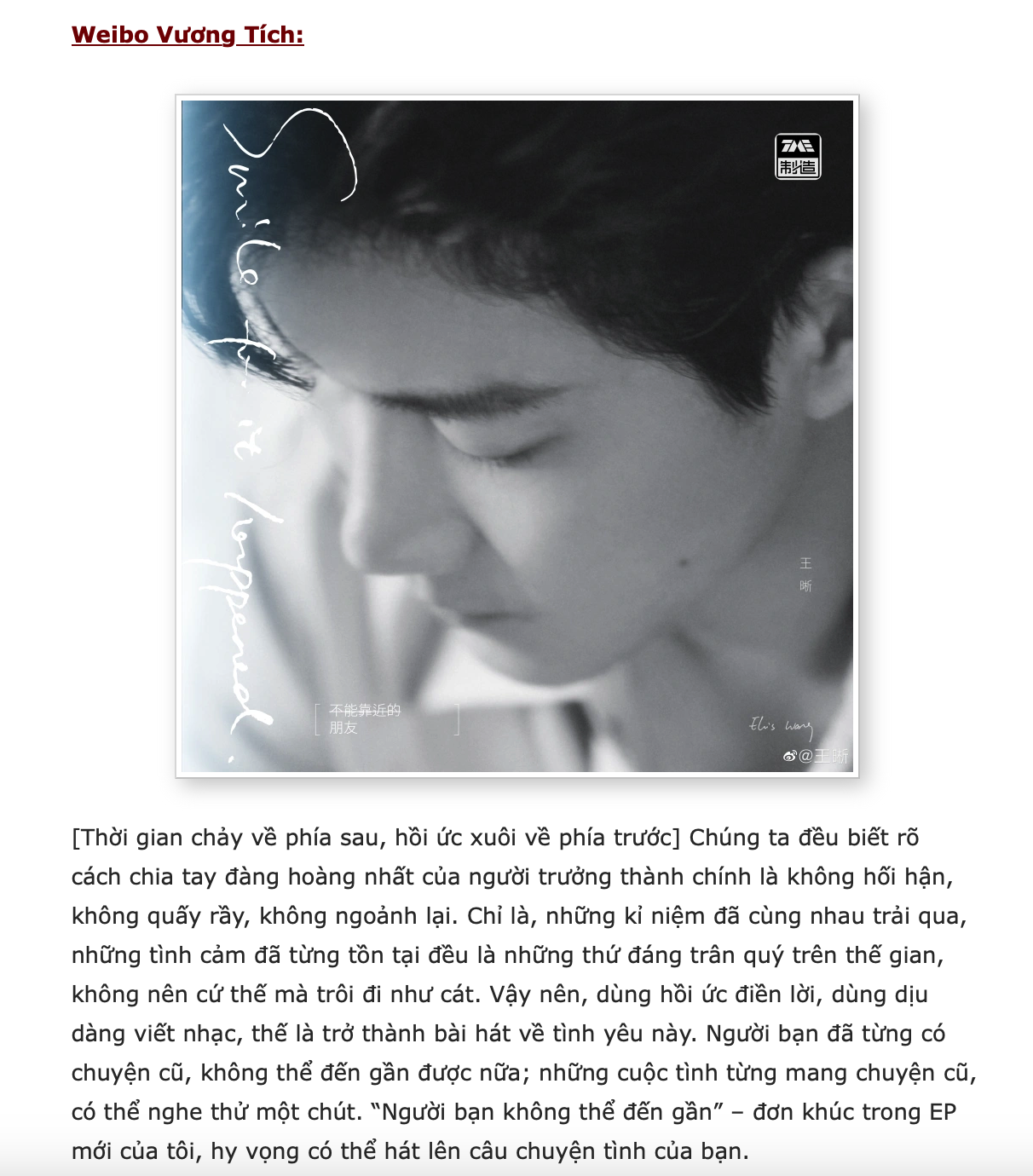[Lời bài hát “Người bạn không thể đến gần” – Vương Tích]