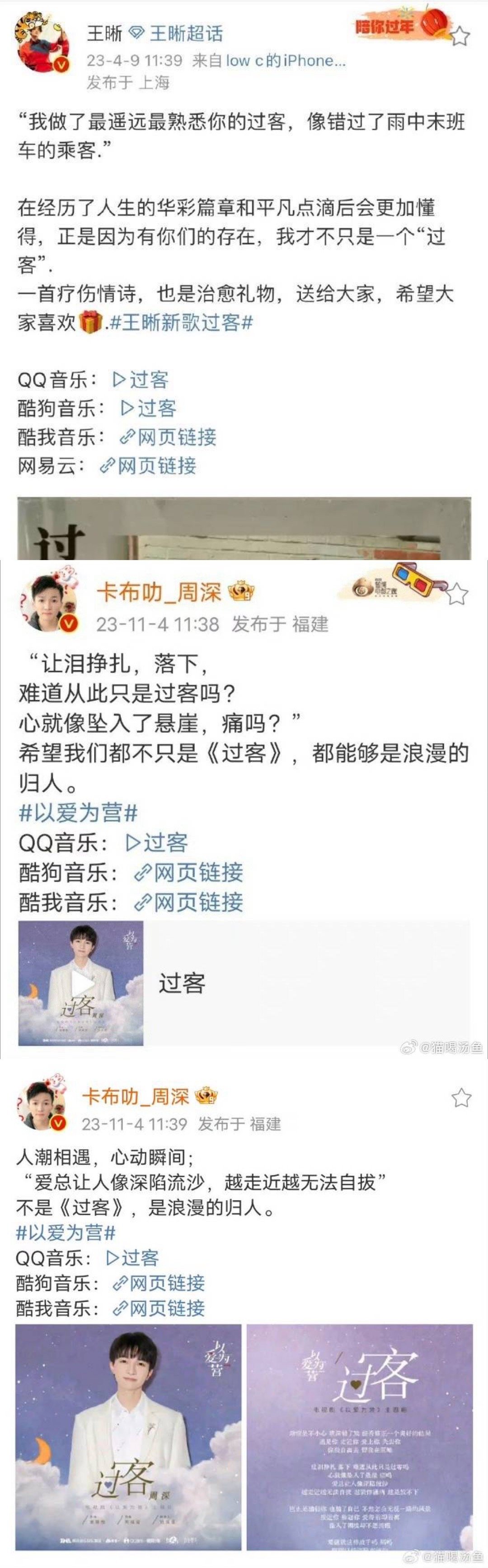 Hai bài 《 Người qua đường 》được đăng cùng một mốc thời gian; lúc ấy tui hãi tới mức lật lại nửa năm Weibo của cả hai người chỉ để tìm xem rốt cuộc là sự tình cờ hay là cố ý. Kết quả là đương nhiên không có kết quả, chỉ có thể xác nhận mốc thời gian đó đúng là rơi vào khoảng thời gian hai người họ hay đăng Weibo vào thời điểm đó mà thôi. Nhưng mà thế cũng không sao, thật sự chỉ là một điều trùng hợp ————— Ông trời cũng muốn cho tui cắn đường, mới cố tình làm ra đấy —————— chính chủ muốn cho tui ship mừ (¯▽¯)