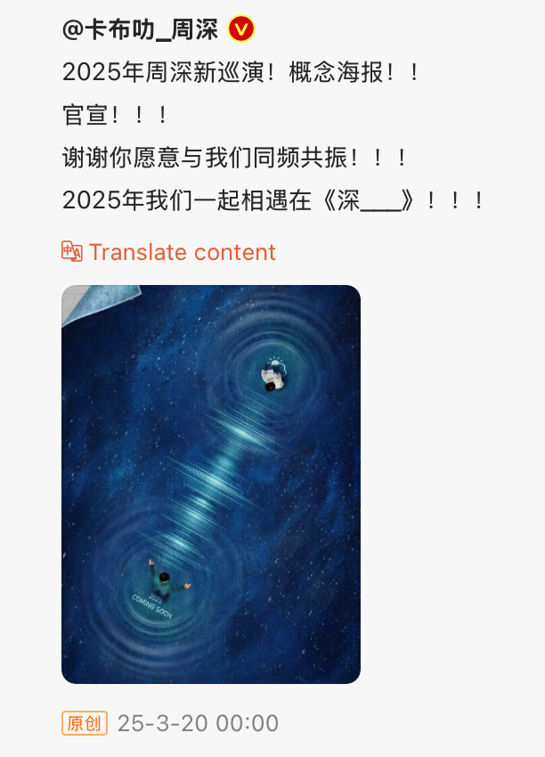 Tour concert mới năm 2025 của Châu Thâm! Poster concep!!! Chính thức!!!