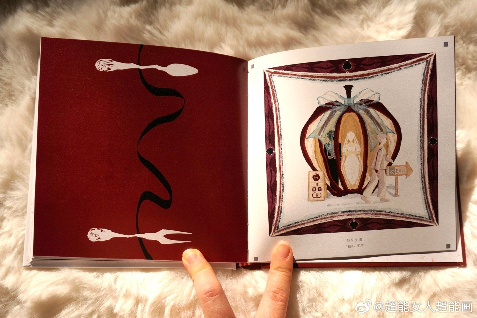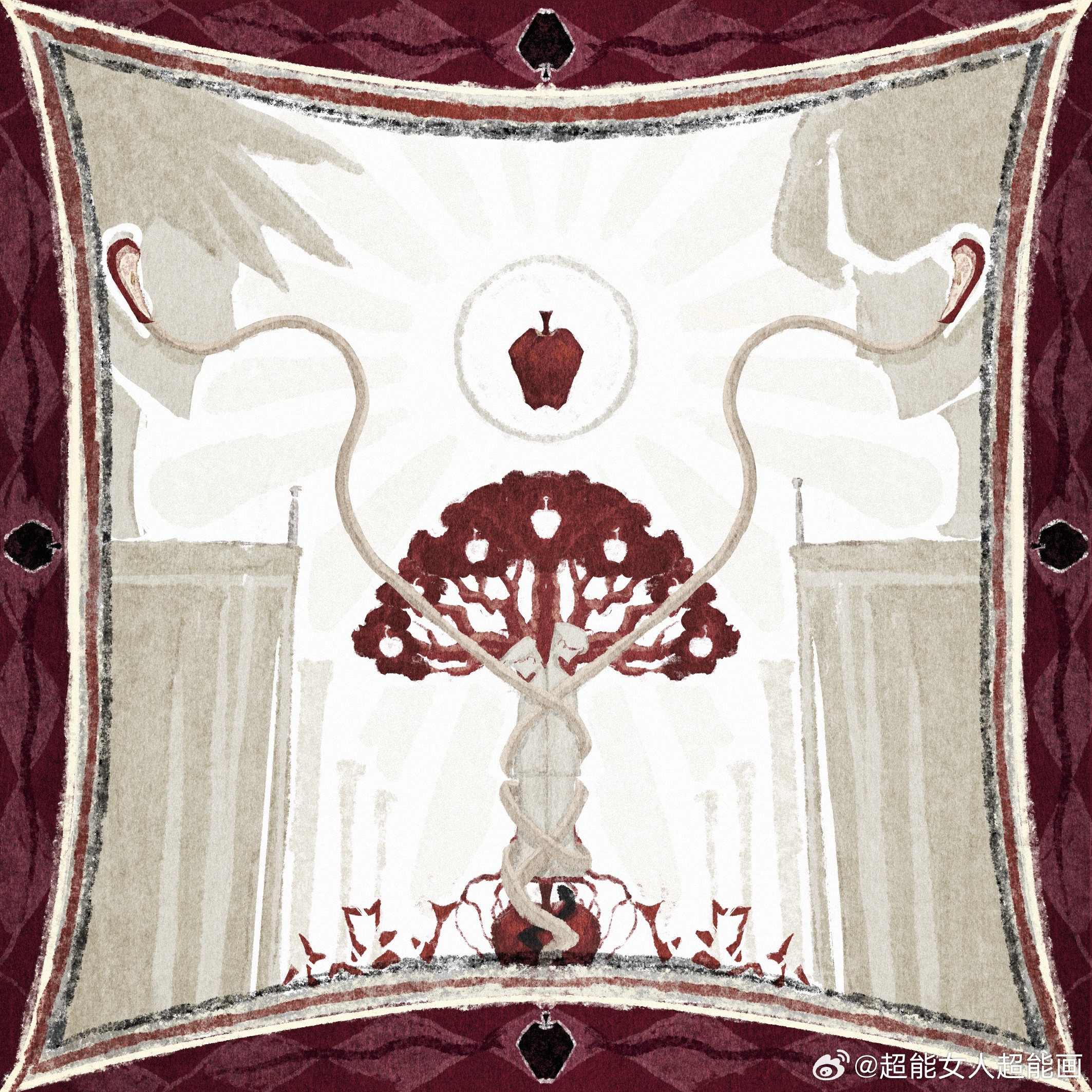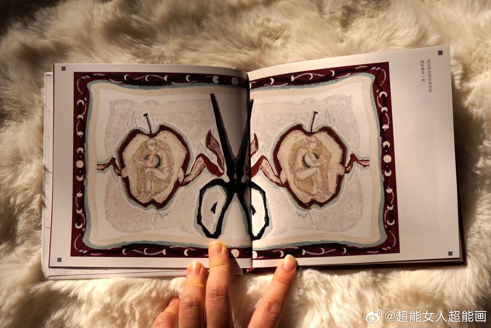 rep: Trái táo biến thành mặt trăng quả là một thiết kế thiên tài! Super woman chính là cô! Tội lỗi nguyên thuỷ chính là nguồn gốc của ham muốn của A-đam và E-va, nhưng cũng là điểm xuất phát của khởi nguồn thế giới. Ý tưởng trái táo này làm sao cô nghĩ ra được vậyyyy! Nhưng mà thiên tài là ở chỗ trái táo đã bị cắt thành hai mảnh trăng khuyết, tội lỗi chúng ta cùng nhau nếm trải đã trở thành căn ngục giam cầm lẫn nhau, còn lõi táo như xương khô chính là nhân chứng và huy chương cho tội lỗi đã sa lầy vào tình yêu của cả hai chúng ta.