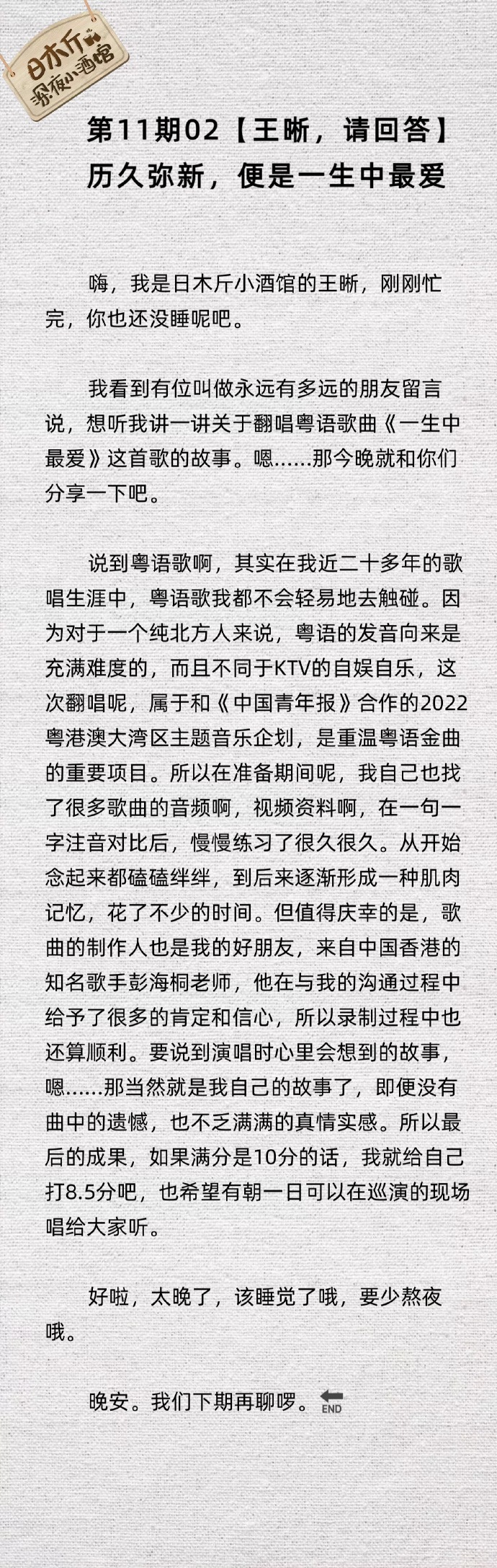 Tôi thấy có một bạn tên “Vĩnh viễn có xa không” để lại lời nhắn, muốn nghe tôi kể về việc hát lại bài hát tiếng Quảng Đông《 Yêu nhất trong đời 》. Ừm. . . . . . Vậy tối nay tôi sẽ chia sẻ với các bạn về câu chuyện này nhé.